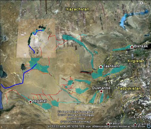 Jako obszar bezodpływowy, basen Morza Aralskiego, jest wyjątkowo podatny na wszelkiego typu ingerencje, a jedną z najpoważniejszych, była budowa kanału Kara-Kumskiego, nawadniającego znaczne obszary pustyń Turkmenistanu. Dołączając do tego intensywną rozbudowę sieci irygacyjnej w Azji Centralnej, jak i niedbałe jej wykonanie, powodujące marnotrawienie znacznej ilości wody, mamy rezultat, jaki można dziś obserwować.
