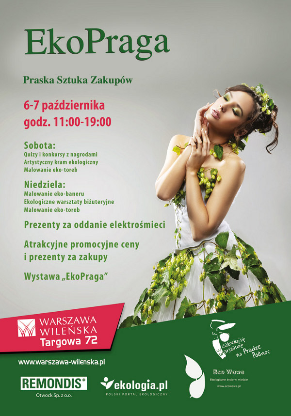 W weekend 6 i 7 października między 11.00 a 19.00 CH Warszawa Wileńska zaprasza na wielką akcję EkoPraga. W ramach wydarzenia organizatorzy zapraszają na ekologiczne warsztaty plastyczne, konkursy i quizy z nagrodami oraz prezenty za pozostawienie elektrośmieci. Akcja jest objęta patronatem honorowym Urzędu Dzielnicy Praga Północ.