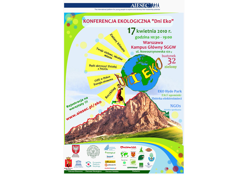 W tym miejscu, naprzeciw Waszym potrzebom wychodzi organizacja studencka AIESEC, która zaprasza Was na kwietniową, zieloną Konferencję „Dni Eko”!