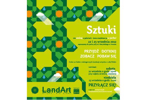 W dniach 22 i 23 września 2012 r. warto wybrać się do parku przy ul. Waryńskiego w Toruniu (Jakubskie Przedmieście), gdzie odbędzie się plenerowe wydarzenie Artyści dla Ziemi – Land Art Festiwal.