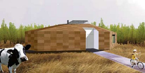 Jest to dom w konstrukcji szkieletu drewnianego, z izolacją z celulozy i elewacją pokrytą panelami z korka. Centralną częścią domu zbudowanego w zaproponowanym systemie jest wieloboczny pokój dzienny, wokół którego rozmieszczone są modułowe pomieszczenia w ilości i układzie dostosowanym do potrzeb rodziny i warunków działki. Wszystkie pomieszczenia układające się w pierścień wokół centralnego pokoju mogą być z nim połączone lub odizolowane za pomocą systemu ścian przesuwnych. Dzięki temu układowi wszystkie sypialnie, kuchnia, jadalnia itp. są jasno oświetlone, nie ma powierzchni przeznaczonej tylko na komunikację. Urządzenia do ogrzewania stanowi gruntowa pompa ciepła, kominek z zamkniętą komorą spalania na paliwo stałe, kolektory. Wentylacja mechaniczna nawiewno-wywiewna z rekuperatorem może być okresowo zastępowana naturalną – środki architektoniczne zapewniają konwekcyjny ruch powietrza i pełną przewietrzalność. Przewidziano wykorzystanie wody deszczowej oraz szarej filtrowanej i sprowadzanej do podziemnego zbiornika.