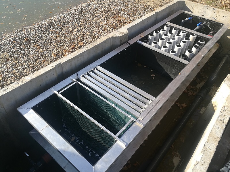 Szczególną uwagę warto poświęcić komorze filtracyjnej. Obecność systemu paneli filtracyjnych chroni drobne organizmy filtrujące wodę przed zniszczeniem przez pompy i wtłoczeniem go w mineralne strefy filtracyjne. Z drugiej strony w komorze następuje spowolnienie przepływu wody do prędkości 0,1-0,5 m / min. Dzięki temu zostaje zachowana populacja planktonu, a złoża mineralne są w stanie zaabsorbować znacznie więcej szkodliwych związków odżywczych i zanieczyszczeń znajdujących się w wodzie.
