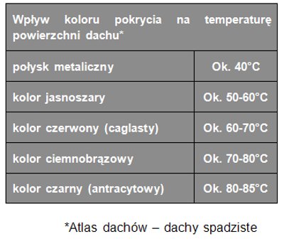 Bardzo ciekawy artykuł naświetlający problem przegrzewania się dachu a w następstwie pomieszczeń mieszkalnych. Warto wiedzieć że przy zastosowaniu ciemnych pokryć dachu trzeba uwzględnić grubszą warstwę termoizolacji.