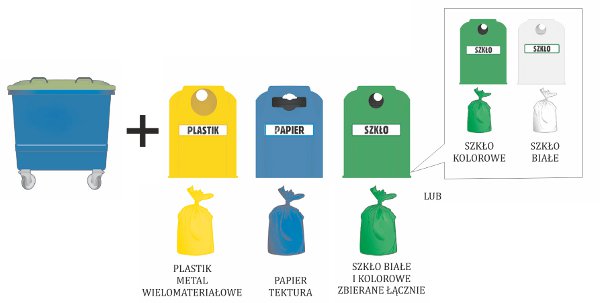 W sytuacji, gdy Twój odbiorca odpadów dostarcza kilka pojemników (worków) na odpady w różnych kolorach, wówczas: