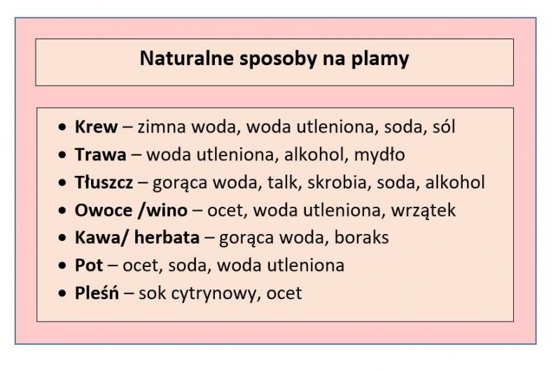 W przeciwieństwie do syntetycznych odplamiaczy domowe sposoby są zazwyczaj bezpieczne dla zdrowia – nie drażnią skóry i oczy, nie powodują uczuleń. Nie potrzebują również wysokich temperatur prania przez co są bezpieczniejsze dla tkanin.