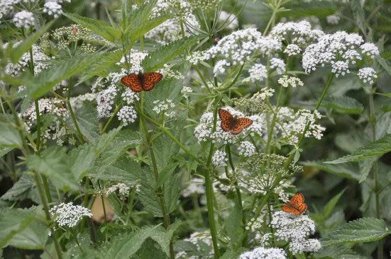 W drugim rzędzie za ukwieconymi bylinami sadzimy zwykle wyższe drzewa i krzewy, z których część również nie tylko doskonale znosi, ale wręcz preferuje długie popołudniowe słońce. W tej roli doskonale sprawdzają się zwłaszcza budleje Dawida, zwane też motylimi krzewami, których obfite, stożkowate kwiatostany są największą atrakcją dla owadów i napełniają zagon fantastycznym aromatem.