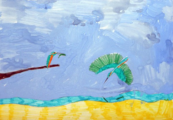 Renata Brzozowska: Urzekła mnie niezwykła kompozycja pracy i bardzo “dojrzała” artystycznie dusza. Piękna, jasna, świetnie dobrana kolorystyka, a do tego oczywiście dobrze oddane wszelkie cechy zimorodka. Praca Joanny ma przez to bardzo osobliwy klimat.