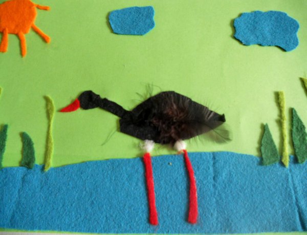 Paweł Kamiński: Bardzo ładny, kolorowy pejzaż, z wzorowo oddanym i pięknie wyciętym czarnym bocianem. Najbardziej urzekło mnie skrzydło bocianie zrobione z … piórka.