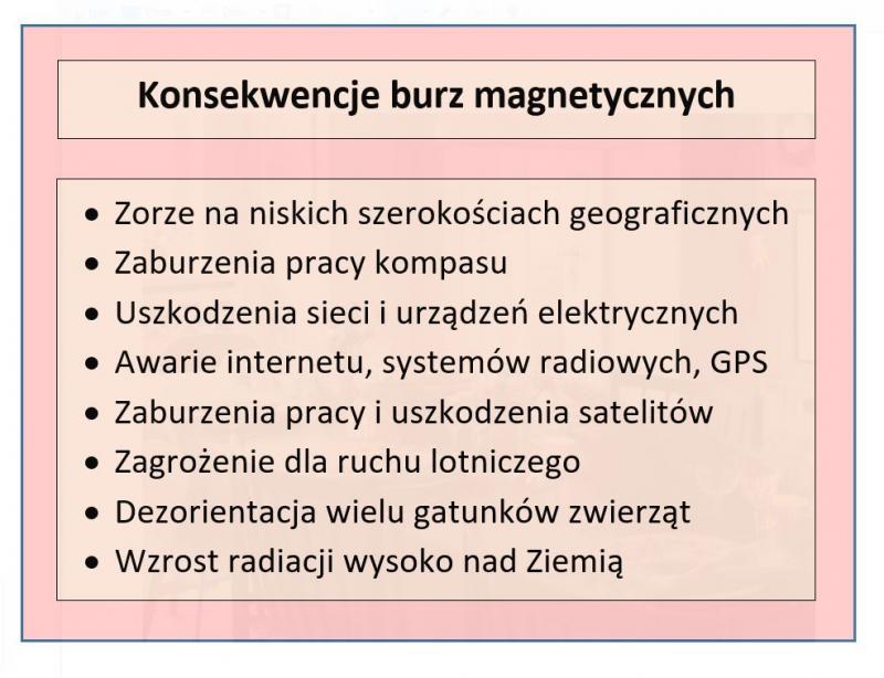 Dla porządku dodajmy, że aktywność Słońca zmienia się w cyklach trwających ok. 11 lat, a w czasach swego maksimum powoduje okresowy wzrost temperatury na Ziemi i koncentracji ozonu w atmosferze oraz właśnie zaburzenia ziemskiej magnetosfery. W grudniu 2019 r. stwierdzono początek 25. cyklu słonecznego, którego maksimum przewidywane jest na okres między styczniem a październikiem 2024 r.