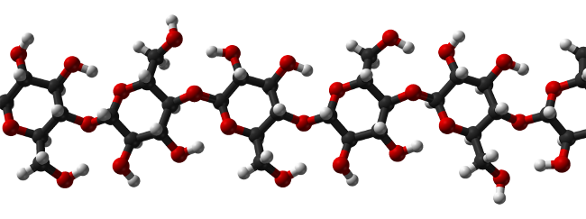 Jedna cząsteczka celulozy to nierozgałęziony łańcuch polisacharydowy składający się z 2500 – 10 000 reszt beta-glukozowych połączonych między sobą wiązaniami glikozydowymi. Podstawową jednostką strukturalną celulozy jest celobioza. Długie łańcuchy łączą się w pęczki nazywane micelami. W ścianie komórkowej micele łączą się w fibryle poprzez połączenie wiązaniami wodorowymi. Długie fibryle stworzone z cząsteczek celulozy tworzą wiele warstw. Pomiędzy wiązkami celulozy znajdują się pozostałe polisacharydy które je łączą.