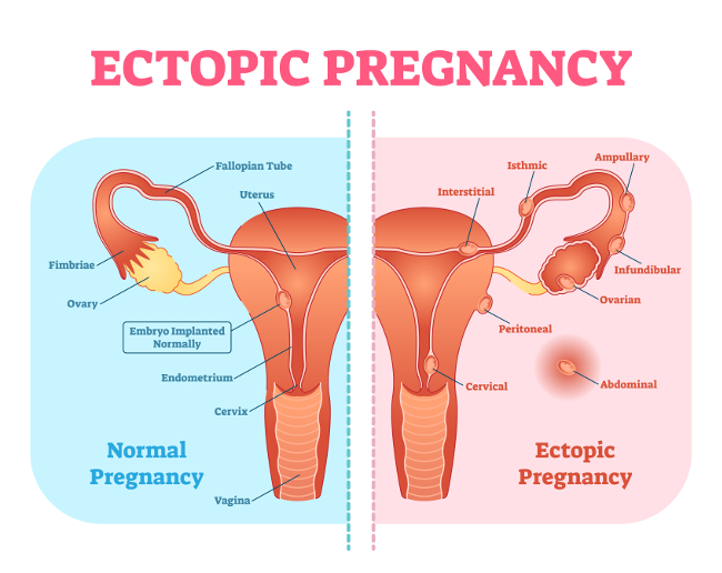 - pozytywny wynik testu ciążowego (oznaczenie gonadotropiny kosmówkowej – hormonu wydzielanego przez zarodek zagnieżdżony w błonie śluzowej macicy).