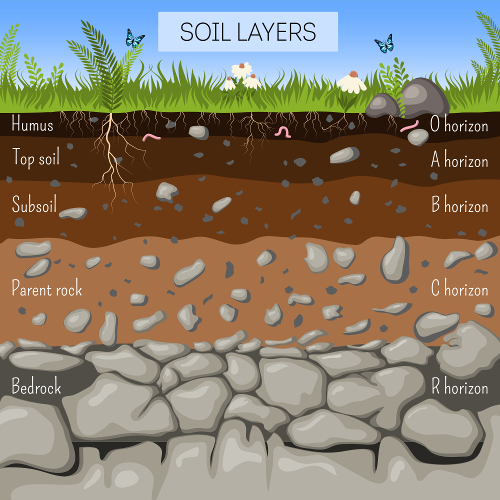 • poziom organiczny (O) – warstwa gleby z nagromadzoną materią organiczną o różnym stopniu przeobrażenia i rozkładu,