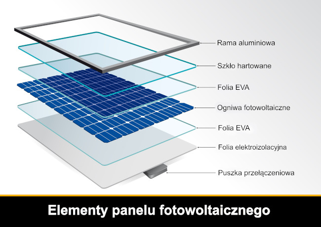 Elementy składowe panelu fotowoltaicznego obejmują: