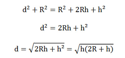 Wzór na odległość obserwatora do horyzontu geometrycznego (d) wyprowadzany jest na drodze przekształceń powyższego zapisu twierdzenia Pitagorasa zgodnie z równaniami: