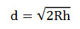Jeżeli obserwacja prowadzona jest blisko powierzchni Ziemi, można pominąć wysokość oczną obserwatora (h) w wyrażeniu (2R + h) wówczas odległość obserwatora od horyzontu geometrycznego (d) można przedstawić w postaci poniższego wzoru: