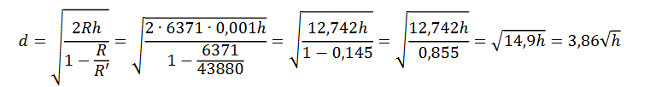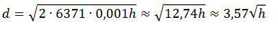 Podstawiając do powyższego równania długość średniego promienia Ziemi wynoszącą 6371 km, otrzymujemy wzór na przybliżoną odległość obserwatora do horyzontu geometrycznego: