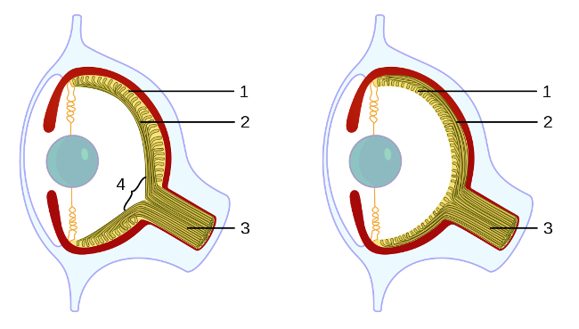 - pęcherzykowate oko głowonogów i oko kręgowców;
