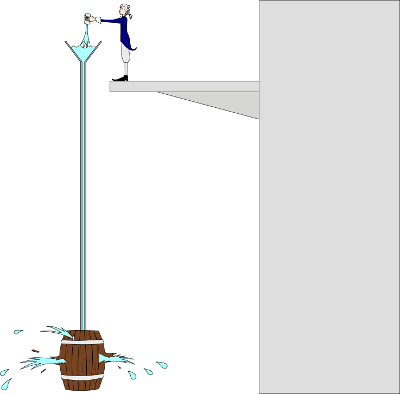 Zjawisko rozsadzenia dębowej beczki przez niewielką ilość wody wynika z wytworzenia się wysokiego ciśnienia (związanego z wysokością słupa cieczy). Ciśnienie to w naczyniu zamkniętym rozchodzi się równomiernie we wszystkich kierunkach i działa jednakowo w całej objętości naczynia (zgodnie z prawem Pascala) i zależy wyłącznie od wysokości słupa cieczy nad jego dnem, a nie od ciężaru znajdującej się w nim cieczy.