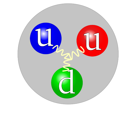 Proton należy do grupy hadronów, złożonych cząstek subjądrowych uczestniczących w oddziaływaniach silnych. Proton wraz z neutronem jako cząstki posiadające niecałkowity spin (fermiony) zaliczane są do podgrupy hadronów – barionów. Proton jest złożoną cząstką składającą się z połączonych silnym oddziaływaniem kwarków – dwóch kwarków górnych (u) i jednego kwarku dolnego (d). Antyproton (p), różniący się od protonu momentem magnetycznym (-2,79 µN) oraz liczbą barionową (-1), zbudowany jest z dwóch antykwarków antygórnych (u) i jednego antykwarku antydolnego (d).