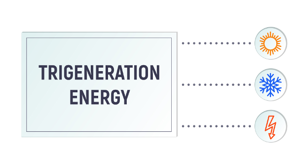 Działanie trójgeneracji obejmuje wytwarzanie energii użytkowej za pomocą trzech źródeł energii wtórnych, które można wykorzystać łącznie, są to: