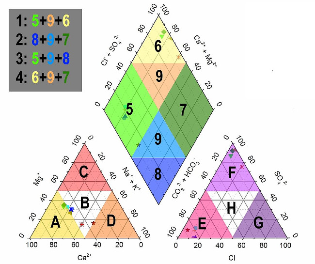 Wyniki analiz składu chemicznego wód podziemnych często przedstawia się w formie tabelek. W przypadku konieczności porównania wyników wielu analiz wykorzystuje się metody skróconego zapisu chemizmu wód (np. wzór Kurłowa) bądź przedstawia się je w formie graficznej w postaci wykresu trójkątnego (trójkąta Fereta) bądź wykresu trójkątno-rombowego (wykresu Pipera).