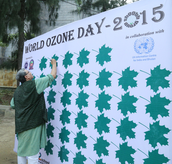 Od kilkudziesięciu lat obserwujemy spadek stężenia ozonu w ozonosferze, co uznaje się za jeden z ważniejszych problemów dla środowiska . By Shoobhgroup (Own work) [CC BY-SA 4.0], via Wikimedia Commons