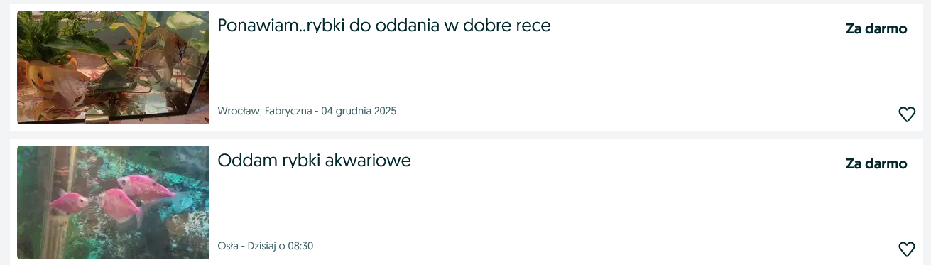 Rybki akwariowe również można znaleźć na tym portalu… za darmo.