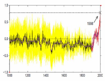 Warto polegać na pomiarach satelitarnych, bowiem te pomiary robione przez „wiodące, czołowe i najbardziej prestiżowe” ośrodki po wykryciu fałszerstw przed Szczytem Klimatycznym w Kopenhadze dwa lata temu, zdewaluowały się. Przypomina o tym autor jednego z najlepszych blogów sceptycznych wobec zmian klimatu Steve McIntyre na stronie https://climateaudit.org/. Okazało się, że ekipa zwolnionego w atmosferze skandalu prof. Phila Jonesa z Uniwersytetu Wschodniej Anglii, stosowała wiele rodzajów manipulacji danymi, fałszując pomiary temperatur. Najsławniejszy „trik Mike’a” polegał wprost na podkręcaniu wyników pomiarów temperatur, co obrazuje poniższy wykres.
