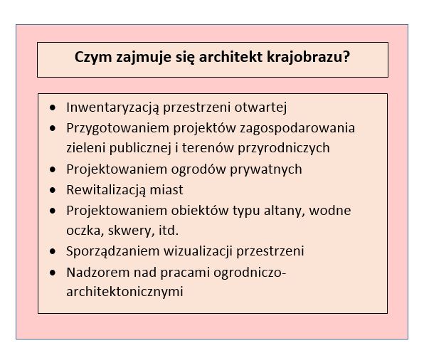 Uwaga: W przeciwieństwie do architekta budowlanego architekt krajobrazu nie potrzebuje żadnych specjalnych uprawnień do wykonywania zawodu!