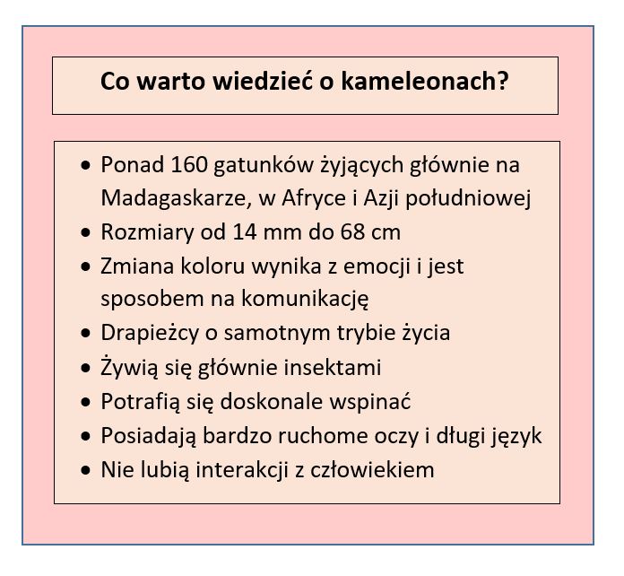 Tabela przedstawiająca kameleona; opracowanie własne