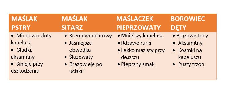 Tabela pozwalająca odróżnić maślaka pstrego od podobnych grzybów; opracowanie własne