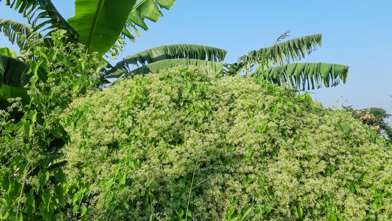 Pnącza są szczególnie niebezpiecznym intruzem ze względu na tempo wzrostu. Mikania (Mikania micrantha) to gatunek występujący w stanie naturalnym w obu Amerykach i zwiększający swoją długość o 8-9 cm na dzień. Rozprowadzono go po świecie jako źródło paszy dla zwierząt i roślinę leczniczą, ale szybko okazało się, że strat jest więcej niż korzyści. Mikania już dziś pokrywa 20% Parku Narodowego Chitwan w Nepalu, a na Sri Lance atakuje plantacje herbaty. W Hong Kongu zawładnęła sporą częścią parków. Niestety, gatunek jest mało podatny na herbicydy, więc zwalcza się go przede wszystkim za pomocą wciornastek, grzybów odpowiedzialnych za rozwój rdzy oraz pasożytujących roślin z rodziny kanianek.