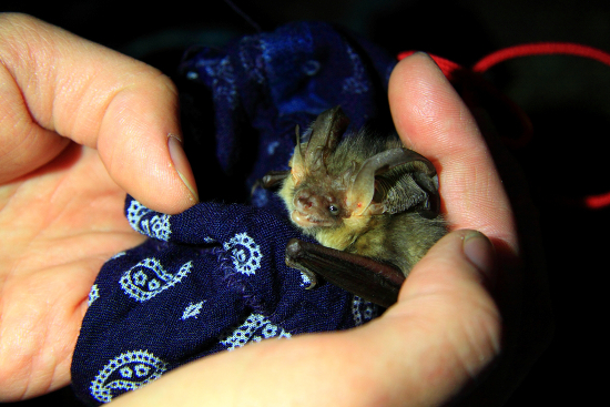 Nikt nie miał już wątpliwości, jeszcze tylko parę zdjęć i gacka wypuściliśmy. Gosia otworzyła swoją dłoń, a nietoperz chwilę na niej posiedział, rozłożył swoje bardzo długie uszy i kiedy je wyprostował, spojrzał raz w lewo, raz w prawo i poleciał.