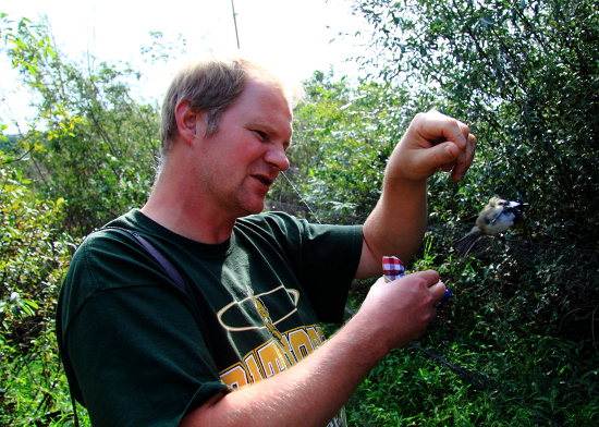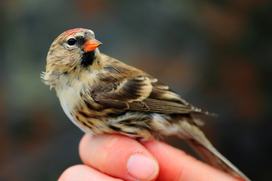 Minęło pół godziny i Krzysiek wrócił wraz z workami pełnymi „fycoli”. Ponieważ było słodkie, leniwe południe, dla ptaków to także czas sjesty. Twierdziliśmy zatem, że kolejne obchody gdzieś tak do 16.00 będą bardzo ubogie. Rzeczywiście tak było. Jak to Paweł idealnie określił, ptaki „kapały” jeden po drugim. Z obchodu na obchód, z godziny na godzinę do namiotu obrączkarskiego trafiało po jednym ptaku. W końcu przyszła moja pora. Wsadziłem kalosze, czapeczkę, worki przywiązałem do szlufki no i poszedłem. Słońce dawało. Żar wylewał się z nieba, w przeciwieństwie do ptaków, których na niebie nie było widać. Jednak po obejściu kilku sieci, za „drapolówką” widziałem, że coś wisiało w sieci, ale bardzo spokojnie. Ptak zupełnie nie wiercił się, tylko spokojnie czekał na jego okazję. Może był już na tyle doświadczony, może nie raz wpadł w sieć, może wiedział że wystarczy poczekać. Wpadł w pierwszą półkę od góry, czyli bardzo wysoko. Musiałem obniżyć sobie sieć, żeby móc wygodniej go wyplątać. O dziwo ptak wcale nie był, aż tak bardzo zaplątany, wystarczyło odczepić skrzydła i można było wyciągać z sieci. Kiedy już go wyjąłem, moim oczom ukazała się czerwona czapeczka na głowie z czarnym podbiciem pod dziobem.