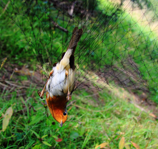 – Patrz, najpierw sprawdzasz, z której strony masz brzuch. O ten jest z tej, czyli stoimy po dobrej stronie sieci. A teraz najpierw wyciągasz mu ogon, potem nogi. Tylko trzeba uważać, bo one lubią ponownie złapać sieci. O widzisz, znowu złapał. Ech i od nowa… Nogi wyplątane to teraz skrzydło. Jak już jedno wyplączesz to potem głowa i drugie skrzydło już samo zejdzie.