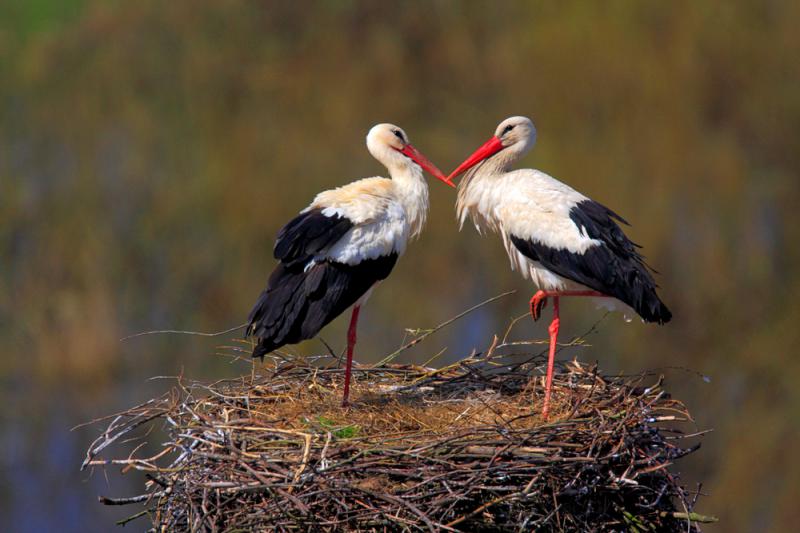 Zaraz za żurawiami do Polski zaczynają zlatywać bociany białe (od drugiej polowy marca). Bociany, które zimę z reguły spędzają w Afryce, w podróż powrotną wyruszają w pierwszej połowie lutego. Ich powrót trwa około sześciu tygodni. Z reguły boćki wracają do tego samego gniazda – po przylocie zaczynają je remontować i poprawiać. Nie czekają jednak na powrót dawnego partnera. Jeśli ten zjawi się zbyt późno, w gnieździe może już nie być dla niego miejsca. W Polsce najwięcej bocianów bytuje na północnym wschodzie Polski – na Mazurach, czy na Suwalszczyźnie. Tam jest mnóstwo terenów, na których mogą żerować, a mieszkańcy traktują je bardzo przyjaźnie.