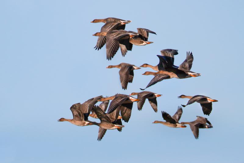 Wiosną jak mało, które ptaki wskazują na koniec zimy. W marcu, na północne lęgowiska zaczynają wracać gęsi, które zimowały w zachodniej Europie. Wśród nich dominują gatunki: gęś białoczelna, gęś zbożowa i gęgawa. Gęsi łatwo usłyszeć, bo dość mocno hałasują i tworzą jedne z najbardziej charakterystycznych stad, zwanych kluczami. W Polsce gęsi osiadają w miejscach, gdzie mają odpowiednią ilość pokarmu i miejsce do odpoczynku. Ptaki w drogę powrotną, na zimowiska ruszają pod koniec sierpnia. Lecą całymi rodzinami. Ptaki łączą się w stada i zaczynają się przemieszczać na zachód. Wędrówka gęsi kończy się w grudniu, gdy docierają na zimowiska w Europie, w tym również w Polsce Zachodniej. Na powrót gęsi nie trzeba czekać długo, bo już w marcu ruszają w drogę do Polski.