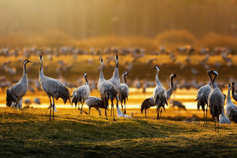 Jednym z pierwszych zwiastunów wiosny jest żuraw. Ptak ten wraca do Polski na przełomie lutego i marca. Również w maju może się zdarzyć, że usłyszymy nad głowami donośny gardłowy głos zwany klangorem i zobaczymy przelatujący klucz żurawi. Wiosenny przylot żurawi jest niepozorny. Na niebie widać klucze lecące w kierunku północnym, jednak na lęgowisku zjawia się niczym duch. Nagle wyłania się z mgły snującej pomiędzy olchowymi zaroślami i wydaje z siebie okrzyku radości. To początek wiosennego klangorzenia. Kolejne wielkie klangorzenie żurawi przypada na czas ich jesiennej wędrówki. Od kilku lat w Polsce obserwowane są miejsca, gdzie żurawie regularnie zimują. Nie widzi im się podróż licząca tysiące kilometrów, wolą zostać bliżej swoich lęgowisk. W końcu to oszczędność energii, którą później mogą spożytkować w zupełnie inny, lepszy sposób.