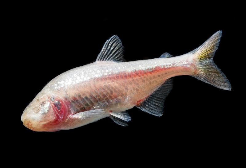 Podobny fenomen, ale w królestwie ryb, zaobserwować można u ślepczyków jaskiniowych (Astyanax mexicanus) typowych dla obszaru Teksasu oraz Meksyku. Większa część gatunku spotykana jest w strumieniach i stawach o kamienistym lub piaszczystym i wygląda dość przeciętnie, niczym srebrne szprotki dorastające 12 cm długości. Ogromną fascynację wśród akwarystów wzbudza jednak ślepa forma jaskiniowa, która wygląda jak rybi albinos. Jej ciało jest biało-różowe, a oczy są tak zdegenerowane, że w zależności od lokalizacji bywają bardzo słabo widzące lub wręcz ślepe. Naukowcom udało się wyjaśnić, że za owo upośledzenie odpowiada specjalne białko alfa-krystaliny powodujące zanik komórek soczewki. Orientacja w wodzie możliwa jest dzięki liniom bocznym wyczuwającym zmiany w ciśnieniu. Co ciekawe, uszkodzenie wzroku powoduje takie zmiany struktury czaszki, że ryba jest bardziej wrażliwa w przestrzennym mapowaniu podwodnych jaskiń.