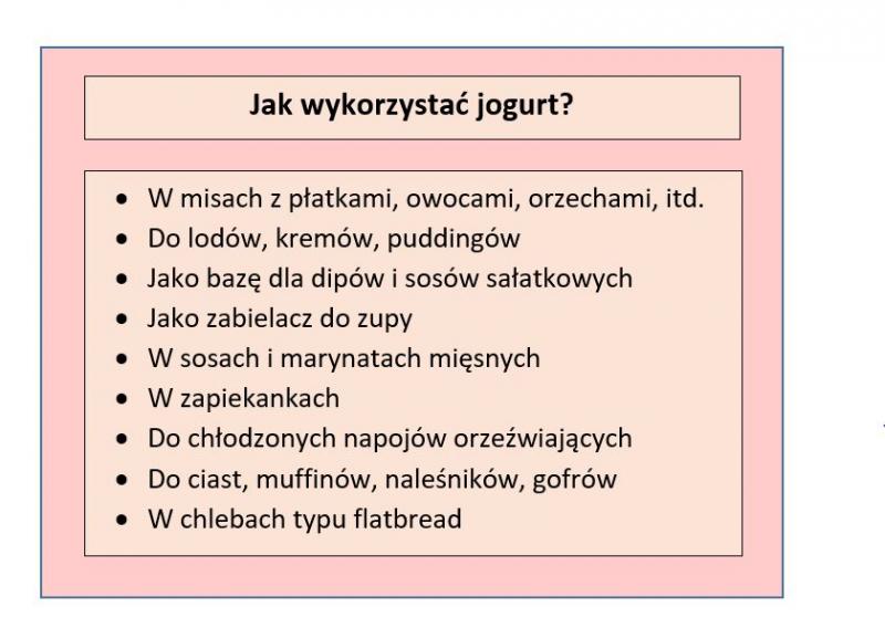 Jogurtem można również zastąpić śmietanę w przepisach na dania mięsne i zapiekanki. Sporo takich przepisów znajdziemy w kuchni indyjskiej, ale coraz częściej jogurt jest też hitem diet odchudzających, które starają się redukować zawartość kalorii i tłuszczu w daniach.