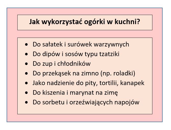 Wreszcie, ogórki są ideałem letnich napojów orzeźwiających – można z nich przygotować lemoniady, smoothie, a nawet drinki alkoholowe. Miłośnicy oryginalnych lodów na pewno docenią też sorbet ogórkowy!