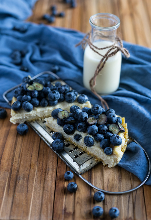 Tarta z borówkami, jaglanym budyniem bez pieczenia
