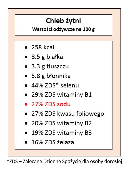 Chleb żytni jest również bogaty w sole mineralne (selen, mangan, miedź, żelazo, magnez), witaminy z grupy B oraz antyoksydanty, a szczególnie korzystny wpływ na zdrowie wykazują chleby pieczone na naturalnym zakwasie. Z szeroko zakrojonych badań wynika, że zamiana chleba pszennego na żytni może przynieść korzyści w postaci:
