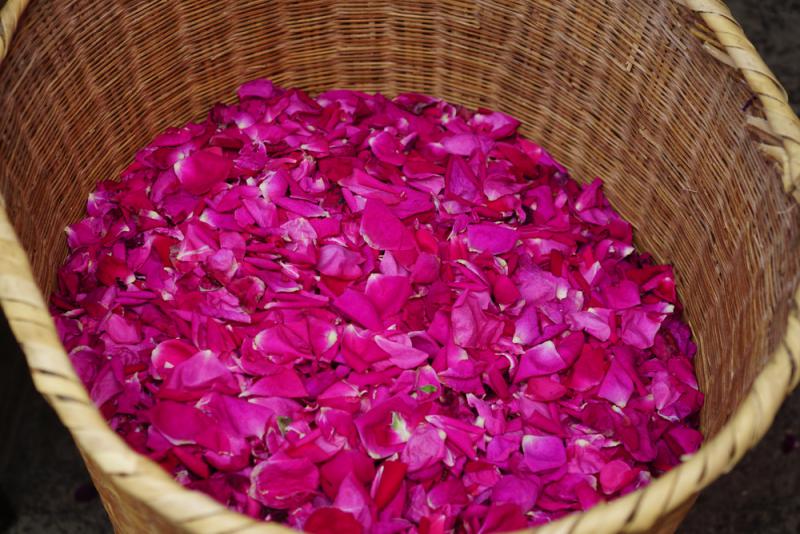 Podstawowym wyzwaniem jest pozyskanie wysokiej jakości surowca – płatki nie powinny bowiem pochodzić z terenów bliskich ulicom i szosom, jak również zakładom przemysłowym. Warto przy tym poszukać krzewów rosnących daleko od miasta, bowiem dla zachowania maksimum aromatu idealnie jest płatków nie myć; nie powinny być więc zakurzone. Zebrane w słoneczny dzień, w pełni rozkwitu, powinny zostać oczyszczone z białych końcówek o gorzkawym posmaku.