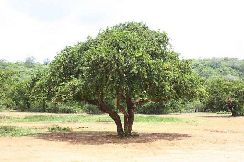 Sproszkowaną gumę podaje się dzieciom wraz z miodem jako lek na biegunkę i dyzenterię. Przeżuwana kora jest również aplikowana na ukąszenia trujących zwierząt, a sproszkowana służy jako ceniony kosmetyk do cery. Z nasion owocu wytłacza się z kolei bogaty w nienasycone kwasy tłuszczowe olej, który może być wykorzystywany do celów spożywczych. Samo drewno jest szaro-żółte, ciężkie i bardzo wytrzymałe, więc znajduje zastosowanie w przemyśle budowlanym i rolniczym, tradycyjnym rękodziele, a ponadto jest cennym materiałem opałowym. Łupiny owoców mogą wreszcie służyć jako miseczki i podręczne pojemniki.