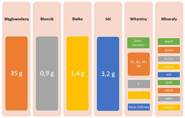 Oto wybrane wartości odżywcze w 100 g ketchupu jednej z popularnych marek: