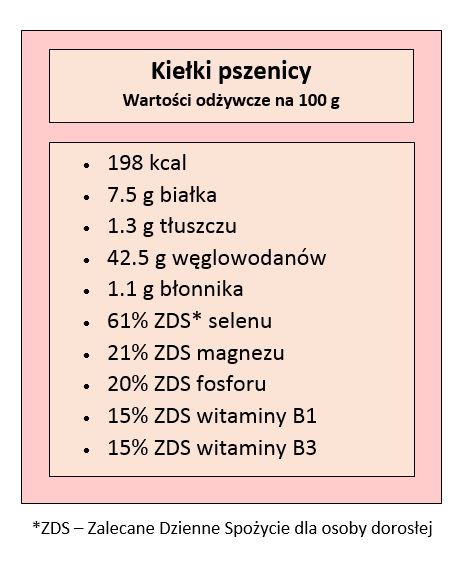Kiełki, jak już wspomniano, są produktem lekkostrawnym dzięki uruchomionym przez naturalne enzymy procesom rozkładu złożonych związków odżywczych. Ta transformacja wiąże się jednak również ze zwiększeniem ilości antyoksydantów obecnych w ziarnach pszenicy, zwłaszcza kwasów fenolowych. Nawet poziom witaminy C ulega stosunkowemu podwyższeniu.