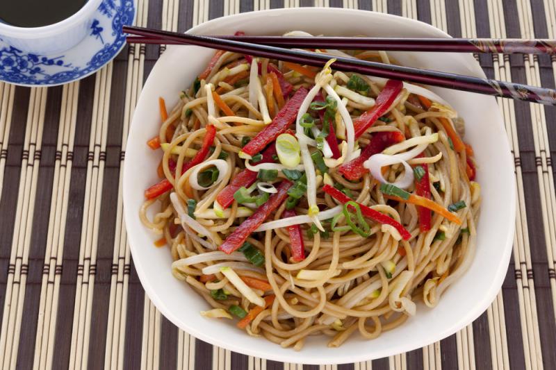Smażony chiński makaron z kiełkami soi