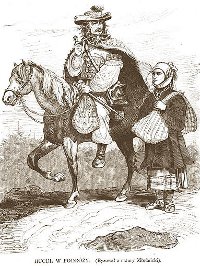 Stoi przed nami mężczyzna wzrostu raczej wysokiego, silnej budowy ciała, o ruchach swobodnych, widocznej zręczności i malującej się na twarzy odwadze. Cerę ma smagłą, nos orli, oczy czarne, czarne też długie włosy i wąs zakręcony. A obok niego niewiasta wielce urodziwa, smukła, gibka, mocna. Przy nich zaś konik niewielki, ale wytrzymały, żywotny i odporny, maści gniadej. Wszyscy twardo stoją na ziemi, jakby z niej wyrośli. A w nich duma i życiowa mądrość, a nad nimi niebo błękitne, a wokół wzniesienia i lasy. Oto mieszkańcy krainy nieco tajemniczej, trochę magicznej, położonej na rubieżach, jak Ultima Thule…