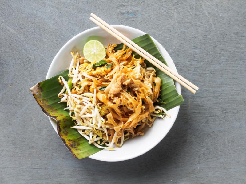 - Pad thai – to smażony makaron, który przyrządza się z dodatkiem jajek, krewetek, kurczaka, czosnku, kiełków fasoli mung, sosu sojowego oraz sosu zrobionego z pasty tamaryndowej, soku z limonki, cukru i sosu rybnego. Danie to jest lekkostrawne i spokojnie może znaleźć się w diecie osób dbających o sylwetkę.